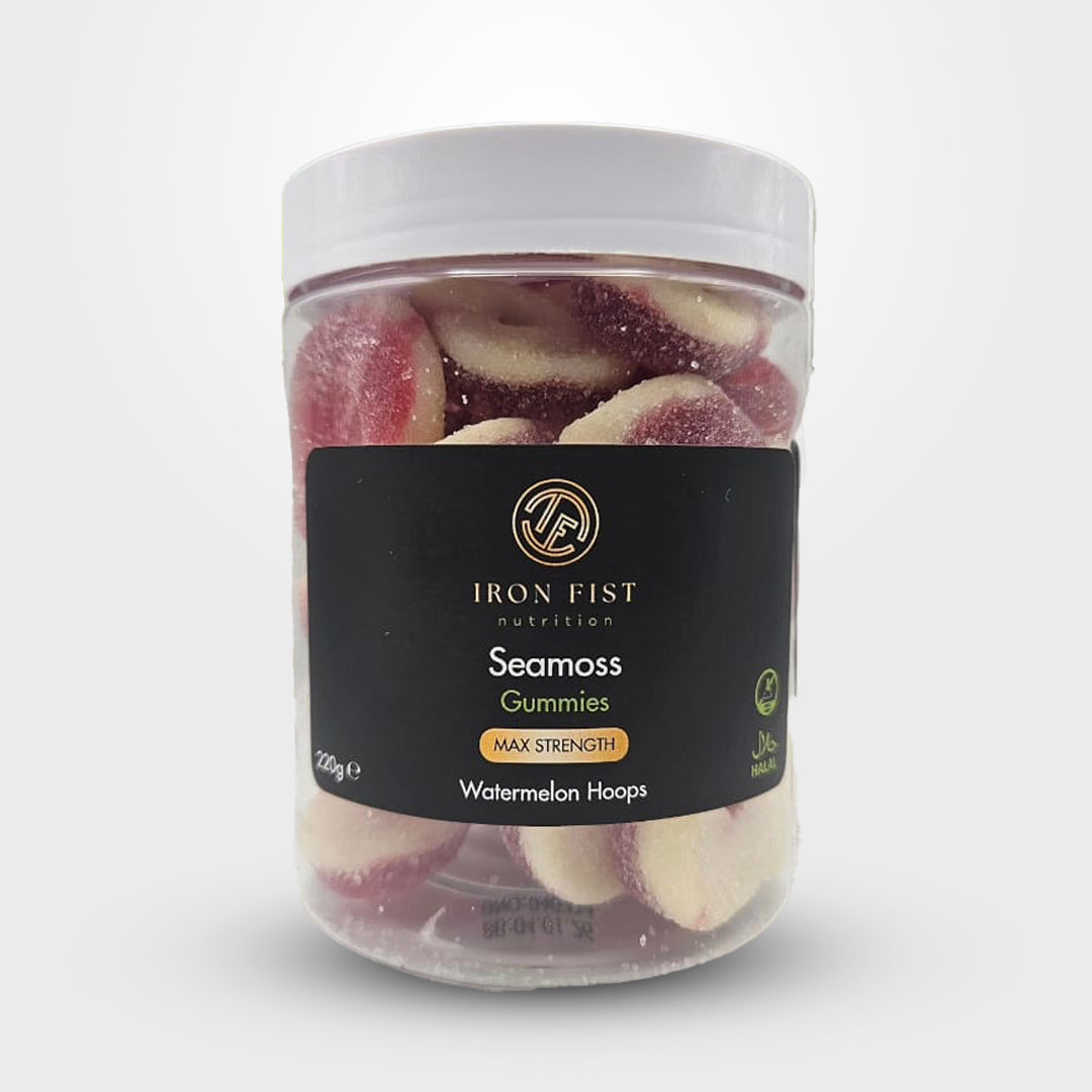 Our Watermelon Hoops Gummies are infused with high-quality seamoss extract and blended in for a delicious way to make one want more. Additionally, the velvety feel of the gummies comes from the beef gelatine, so every bite is just perfect. Further, glucose syrup and sugar do the job for the sweet tooth, while apple juice from concentrate lends it that tinge of fruitiness.