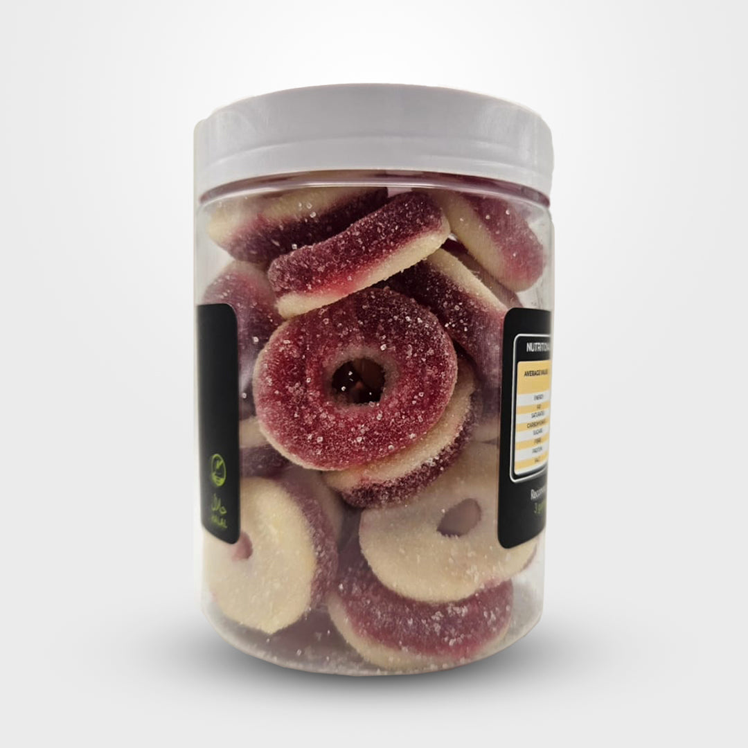 Get ready to indulge your taste buds in the tastes of summer all year long with our irresistible Watermelon Hoops Gummies. Our chewy, fruity snacks deliver a swift kick of juicy watermelon flavour that sets your taste buds dancing with joy! We craft Watermelon Hoops Gummies to provide a sweet pick-me-up or just plain fun, making them the perfect snack to turn your dreams into reality.