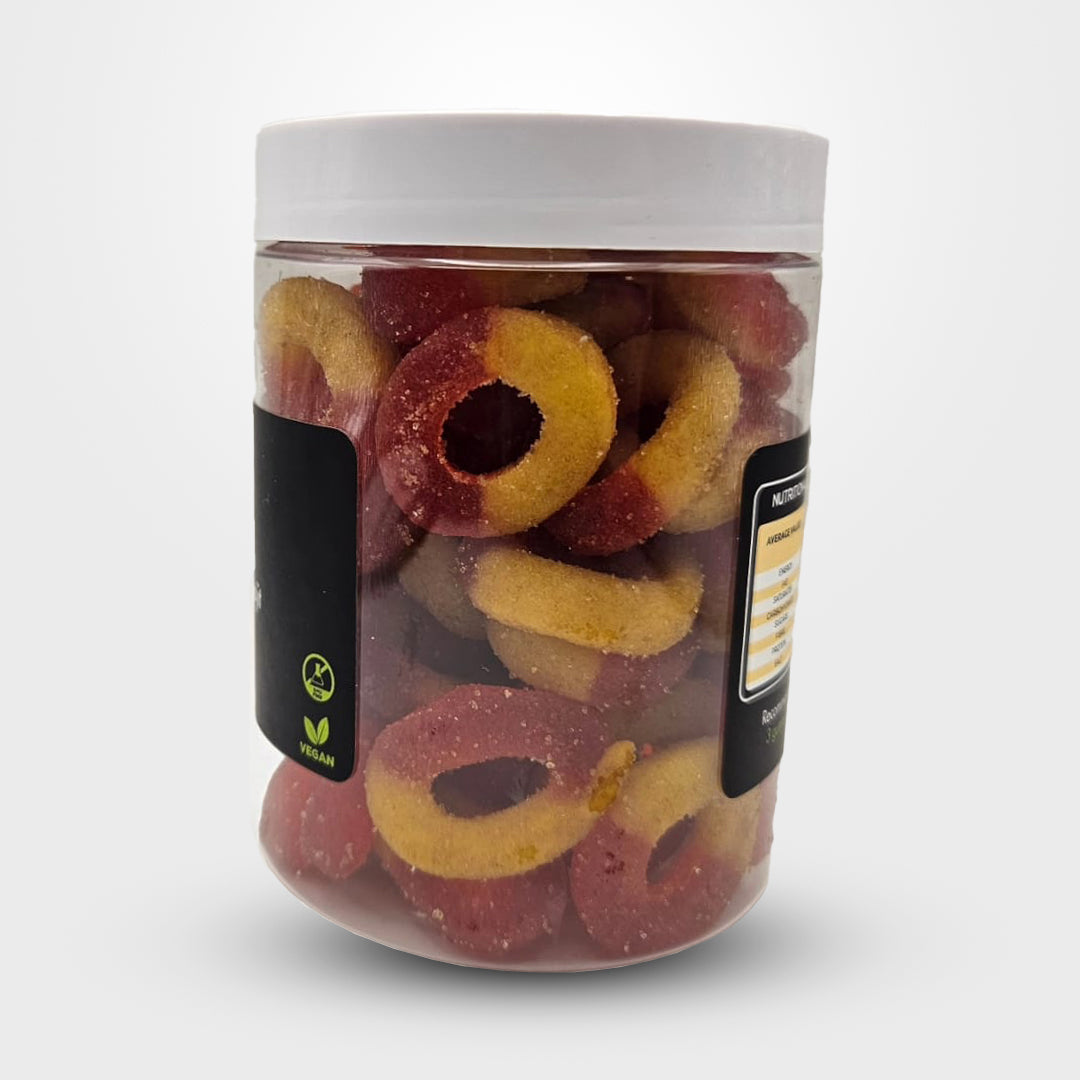 Whether you're looking for a sweet snack to brighten your day or just a fun treat to share with friends, Gummy Peach Rings are exactly what you need. Moreover, our vegan gummies deliver irresistible flavour and chewy goodness that will win you over and turn you into a big fan of this candy! Further, taste the vibrancy in our Gummy Peach Rings today!