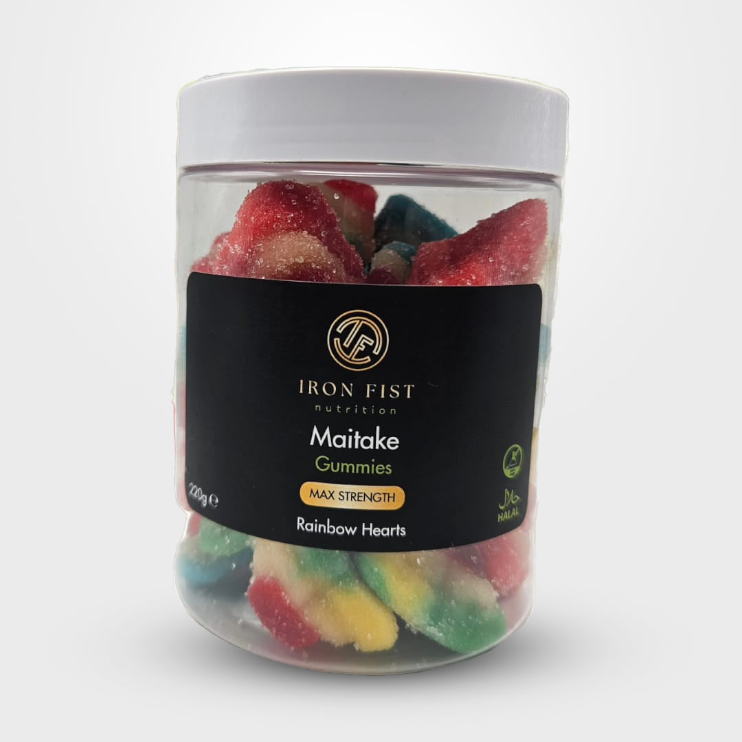 Bring the powerful nutrition of maitake mushrooms into your life with the convenient Maitake Gummies Rainbow Hearts, knowing that you will support your body to keep moving. Our gummies are truly a great way to bring the mighty nutrition of maitake mushrooms right into your life, with the added pleasure of indulging in something quite tasty.