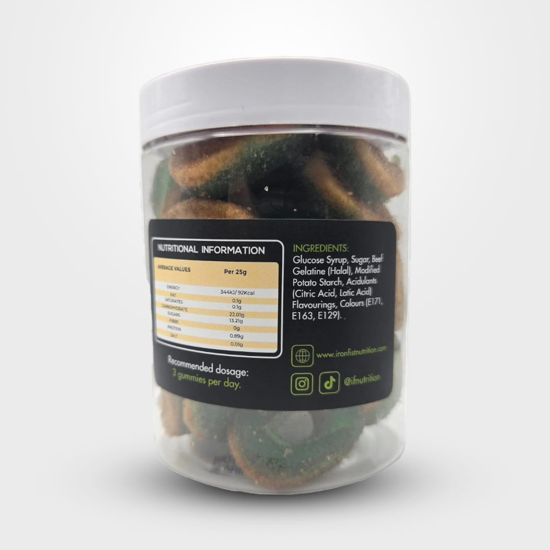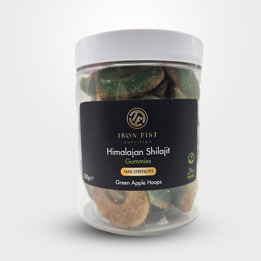 Green Apple Hoops Gummies are carefully crafted by us using quality ingredients to deliver juiciness in every bite. In addition, we use Shilajit Extract, a natural ingredient with numerous beneficial health effects, as the main ingredient. Our expert blend combines Shilajit Extract with glucose syrup, sugar, and halal beef gelatine to create that perfect chewy texture.